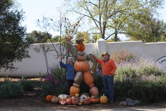 We came up with the notion of Lavender Hill Pumpkins with families in mind. We'd done a couple of decades of vegetable gardening while our family grew, every year producing enough pumpkins-- along with the corn and snow peas-- so that each member of the family had at least one whopper to carve come October. We thought it would be very nice to see other children and their parents scouting about in an autumn field, and so here you have it: Lavender Hill Pumpkins. In the past, professional clients have reserved a dozen or more massive pumpkins at a time for corporate displays. Many of our most loyal customers are from nearby Camp Pendleton. Some Marines come with their families, but many are alone, their people in North Dakota, Louisiana, Montana or New Jersey. They make the drive over from the base to choose a pumpkin in the field, just the way they did back home.