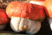 Choosing pumpkins in the field where they grew makes for a fine family outing during the harvest season. Any pumpkin aficionado knows there are few pleasures equivalent to scrutinizing a field, stalking the perfect specimen. Selecting a Christmas tree is similar and of course very delightful, but in some ways, pumpkin picking is even better since you can easily justify having as many pumpkins as you like… Naturally, the pumpkins are superb for Halloween carving, but if you want to keep one or two or three around simply because they’re so handsome, they can last unblemished for months. And many of our pumpkin varieties are delicious for eating as well!